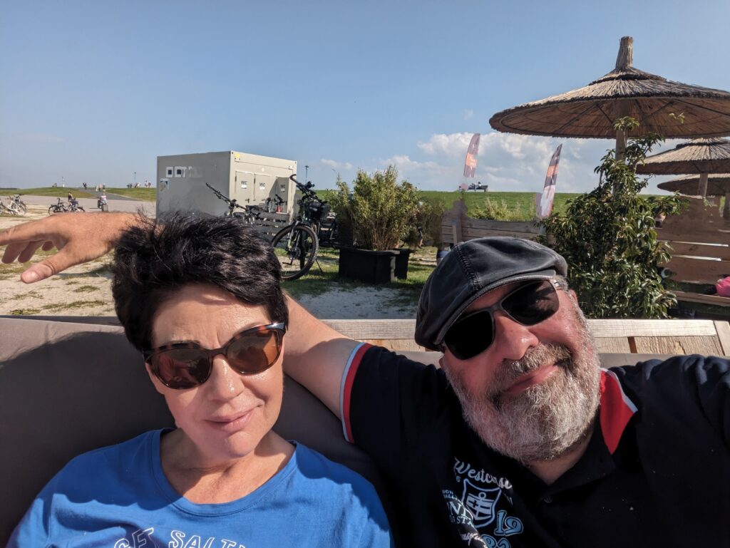 Der Strand ist riesig und besteht vorwiegend aus festen Boden. Sandburgen bauen geht eher nicht. Wir gingen am Strand entlang und genossen das Rauschen der Wellen. Bei der Strandbar machten wir halt, holten uns etwas zu Trinken und einen Bretzel und machten es uns auf einer gepolsterten Bank gemütlich.